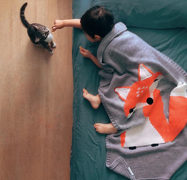 Désormais, ne vous étonnez pas à retrouver chaque soir et matin, votre petit loup enroulé sur le canapé, dans sa jolie couverture tricotée renard, lapin, licorne, renne ou encore ourson 🙂